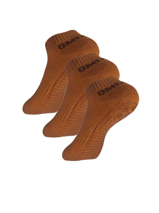 Antislips Grip Sock - Ankle - Brown - 3 pair pack