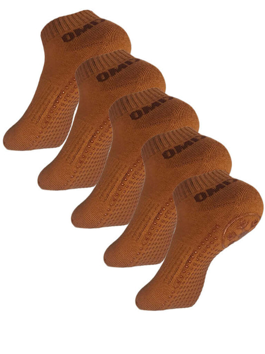 Antislips Grip Sock - Ankle - Brown - 5 pair pack